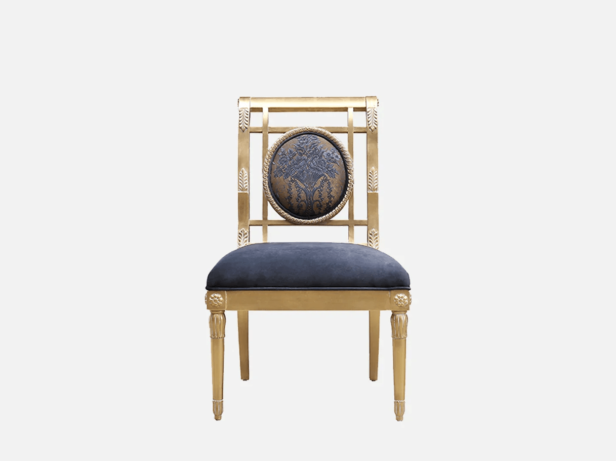 The DC-077 dining chair elevates high end furniture with its French-inspired elegance and meticulous craftsmanship. Crafted from solid beech wood, the frame boasts intricate hand-carvings and gold leaf detailing—signature elements of french style furniture—infusing dining spaces with regal charm.