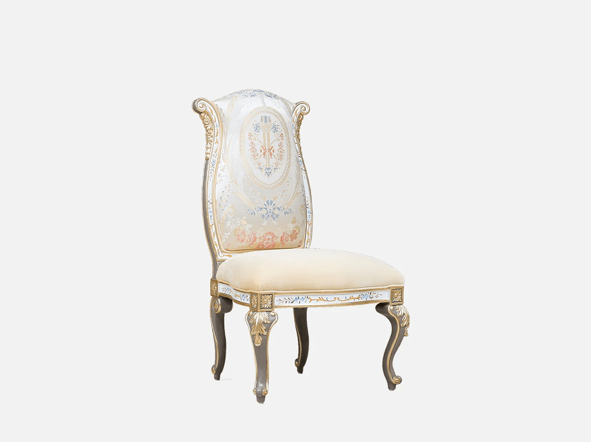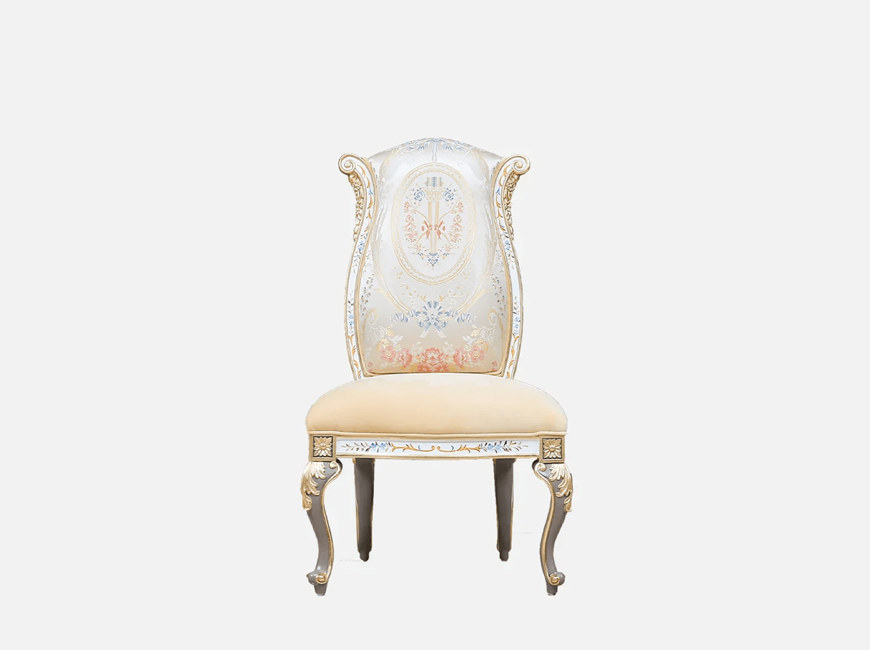 The DC-0421 solid wood dining chair embodies high end furniture luxury with its French-inspired design and exquisite craftsmanship. Crafted from solid beech wood, the frame features intricate hand-carvings and gold leaf accents—hallmarks of french style furniture—creating a regal, timeless allure in dining spaces.
