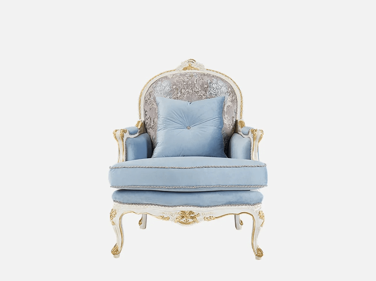 Elegant and regal, the French armchair A-1191 is a luxury velvet armchair designed to transform any refined space into a statement of artistry. Its enveloping silhouette and intricate floral motifs make it perfect for luxury interior living room compositions or high-end boutique suites.